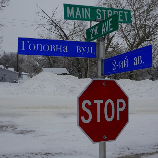 In Hafford, Saskatchewan the street signs are bilingual: Ukrainian and English. A notable touch of cultural preservation.