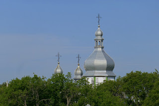 This beautiful church of Byzantine architecture is the Ukrainian Greek Orthodox Church of Saint Elia in Wroxton, Saskatchewan.